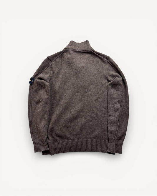 STONE ISLAND BROWN HALF ZIP UP KNIT (M)